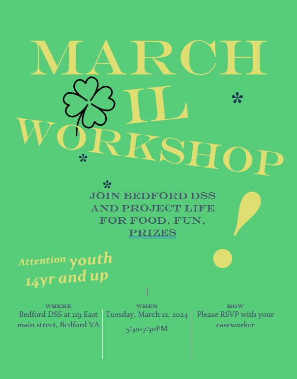 Learn more about a career path in Old Dominion Job Corp! Join Project LIFE for education, training and dinner, March 6, 2024, 6:00pm – 8:00pm @ UMFS Auditorium. RSVP w/ T. Murphy ASAP!