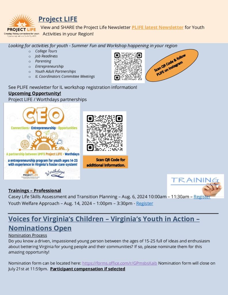 Program Updates National Foster Care Month In May for National Foster Care Month, Project LIFE is showcasing a partner: Voices for Virginia’s Children. Here is what they say about this special month: “May is National Foster Care Month, a time to acknowledge foster parents, family members, volunteers, mentors, policymakers, child welfare professionals, and other members…