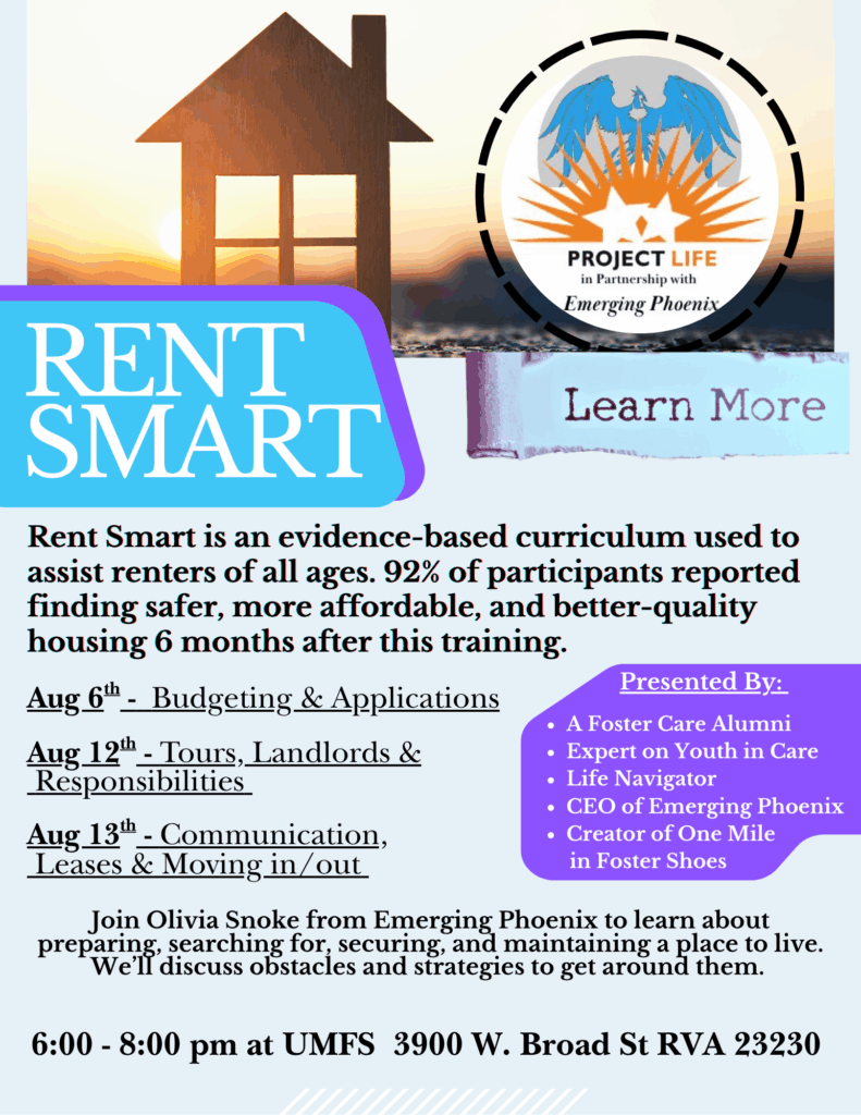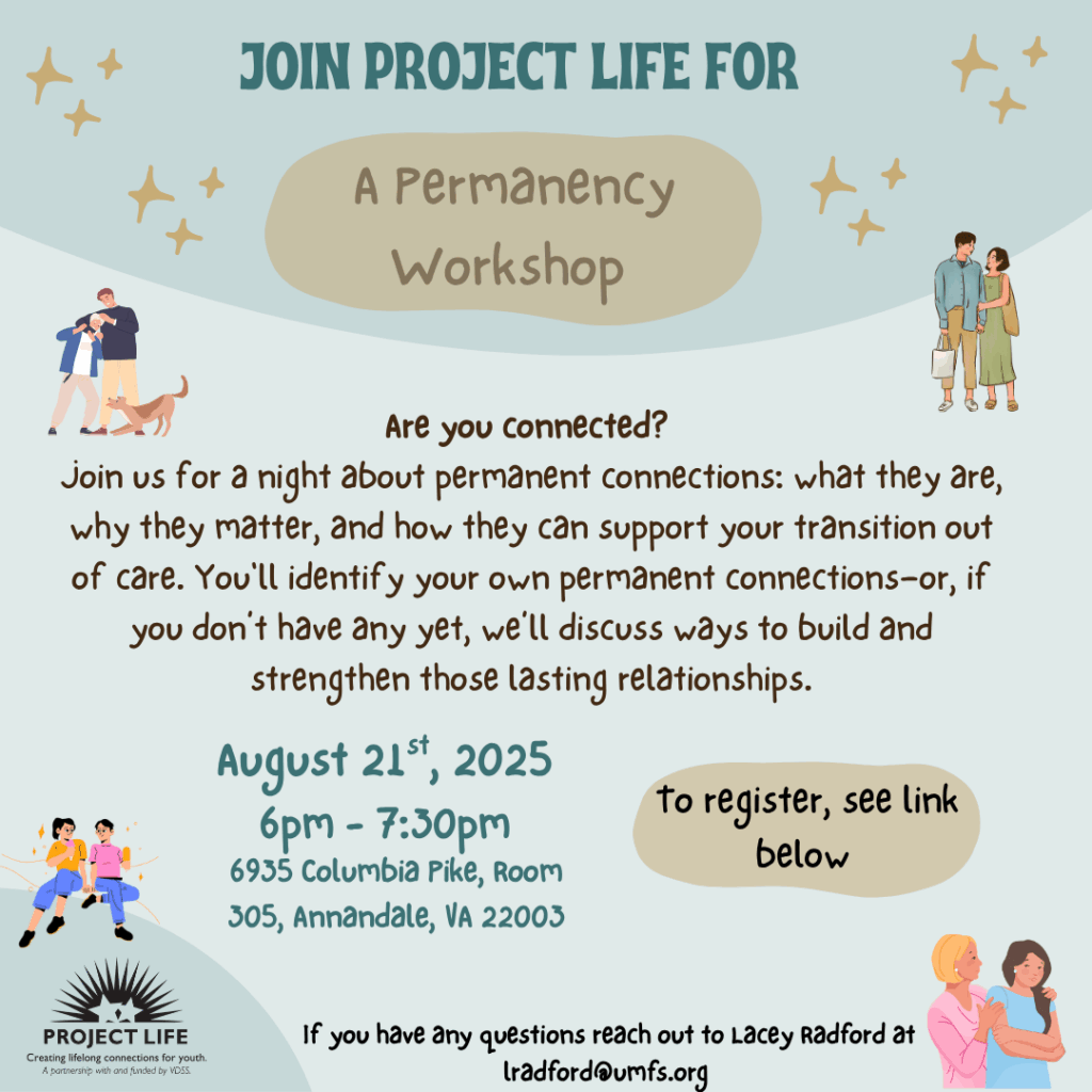 Project LIFE (Living Independently, Focusing on Empowerment) helps youth in Virginia succeed when they age out of foster care. We do that by helping youth directly and by supporting the professionals who work with them. Our free services are available to any youth ages 14-23 who has experienced the foster care system, as well as any DSS or private provider in Virginia.