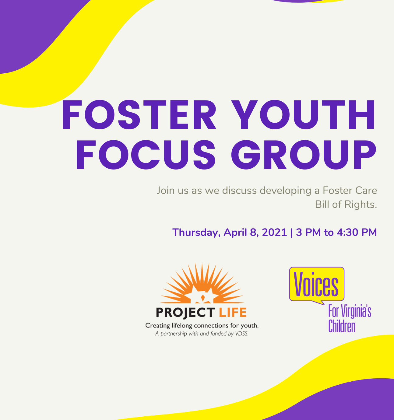 Voices for Virginia’s Children and Project LIFE collaborated in April to host a focus group to engage youth in the creation of a Foster Care Bill of Rights for the state of Virginia. Voices began working on this initiative over the last few months through their Foster Care Policy Network. A youth focus group was created to provide a space where youth can openly share their thoughts and experiences in a peer-supported environment. Youth were encouraged to give input on items they would like to see represented in the Bill of Rights. Youth and young adults gave input on topics ranging from normalcy to engagement in planning for their future.